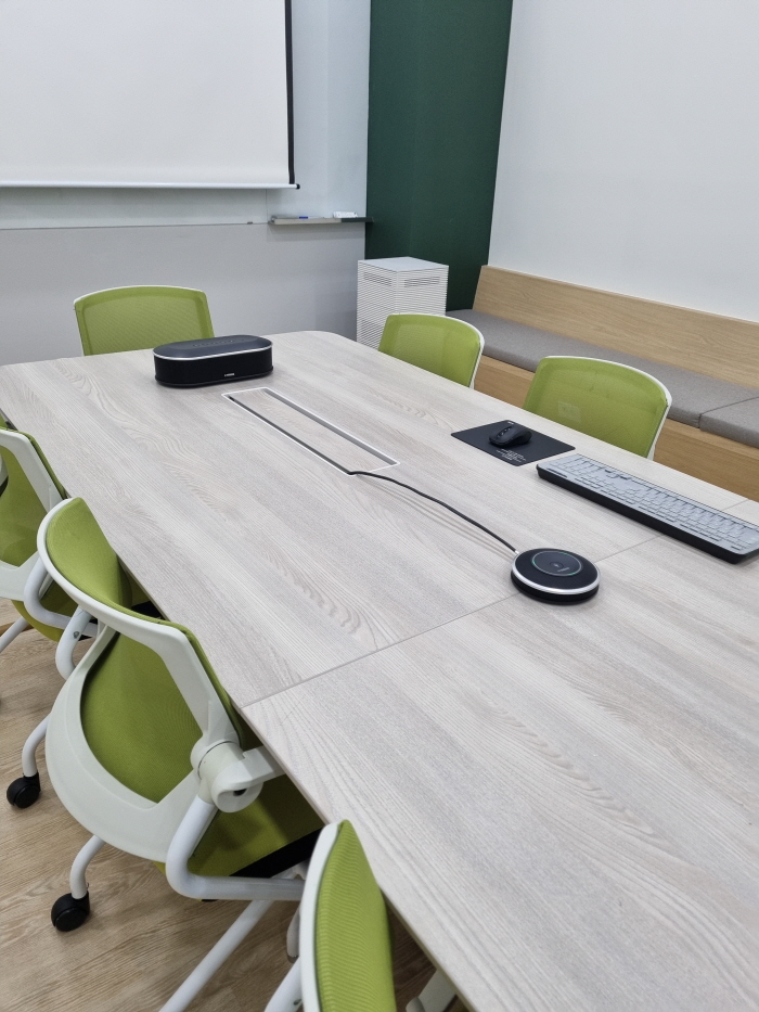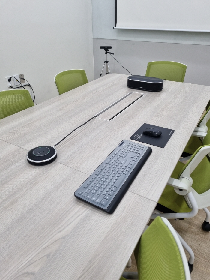 ○ YVC-1000(스피커폰) 1Set를 테이블 포트 박스를 이용하여 설치했으며, 지저분한 타 장비와 케이블도 깔끔하게 정리하였습니다.